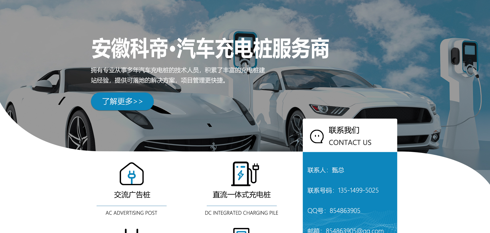 安徽科帝新能源科技有限公司坐落于安徽省會(huì)-合肥,是一家研發(fā)、生產(chǎn)智能充電樁設(shè)備,汽車(chē)充電站后臺(tái)監(jiān)控管理系統(tǒng)和生產(chǎn)高壓開(kāi)關(guān)設(shè)備的企業(yè).由專(zhuān)門(mén)的研發(fā)團(tuán)隊(duì)、管理團(tuán)隊(duì)按照現(xiàn)代化企業(yè)制度規(guī)范設(shè)立的有限責(zé)任公司。致力于為能源智能、安全的應(yīng)用和節(jié)能減排提供整體的技術(shù)與產(chǎn)品解決方案。科帝集研發(fā)、設(shè)計(jì)、生產(chǎn)、銷(xiāo)售以及服務(wù)于一體,在電動(dòng)汽車(chē)充電方案,充電設(shè)施建設(shè)和城市配電方面擁有廣泛的技術(shù)研究及經(jīng)驗(yàn)積累,為客戶(hù)提供安全、智能的充電設(shè)備及充電運(yùn)營(yíng)站建設(shè)一體化解決方案。并堅(jiān)持以人為本、質(zhì)量為先、顧客至上、不斷創(chuàng)新”的企業(yè)理念,為能源行業(yè)的發(fā)展、節(jié)能減排做出重大的貢獻(xiàn)。公司擁有豐富的產(chǎn)品種類(lèi),目前科帝已研發(fā)生產(chǎn)了三十多種產(chǎn)品,充電設(shè)備有直流一體式充電樁、直流分體式充電樁、直流廣告樁、交流廣告樁、廣告一體樁、壁掛交直流樁;等多種充電設(shè)備;每一款產(chǎn)品都是精心打造,力求為客戶(hù)提供優(yōu)越的用戶(hù)體驗(yàn)。展望未來(lái)科帝將通過(guò)持續(xù)的自...